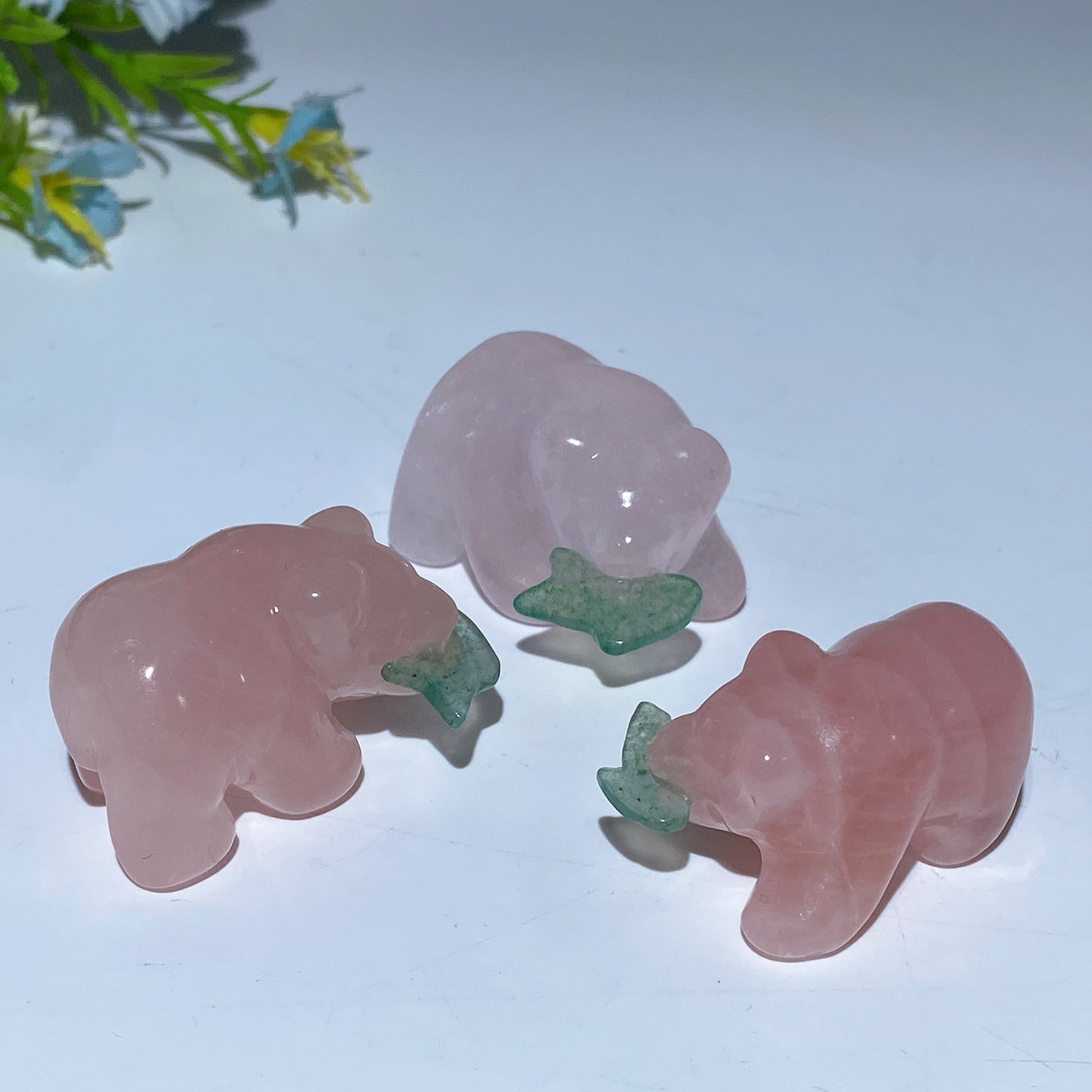 1.5" Rose Quartz Bear with Aventurine Fish Carving Crystal Healing Bulk Wholesale