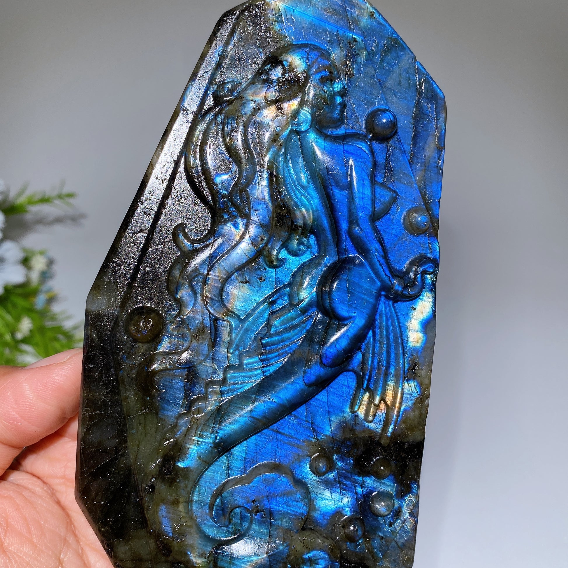 14.5cm Unique Labradorite Mermaid Carving Free Form Crystal Healing Bulk Wholesale