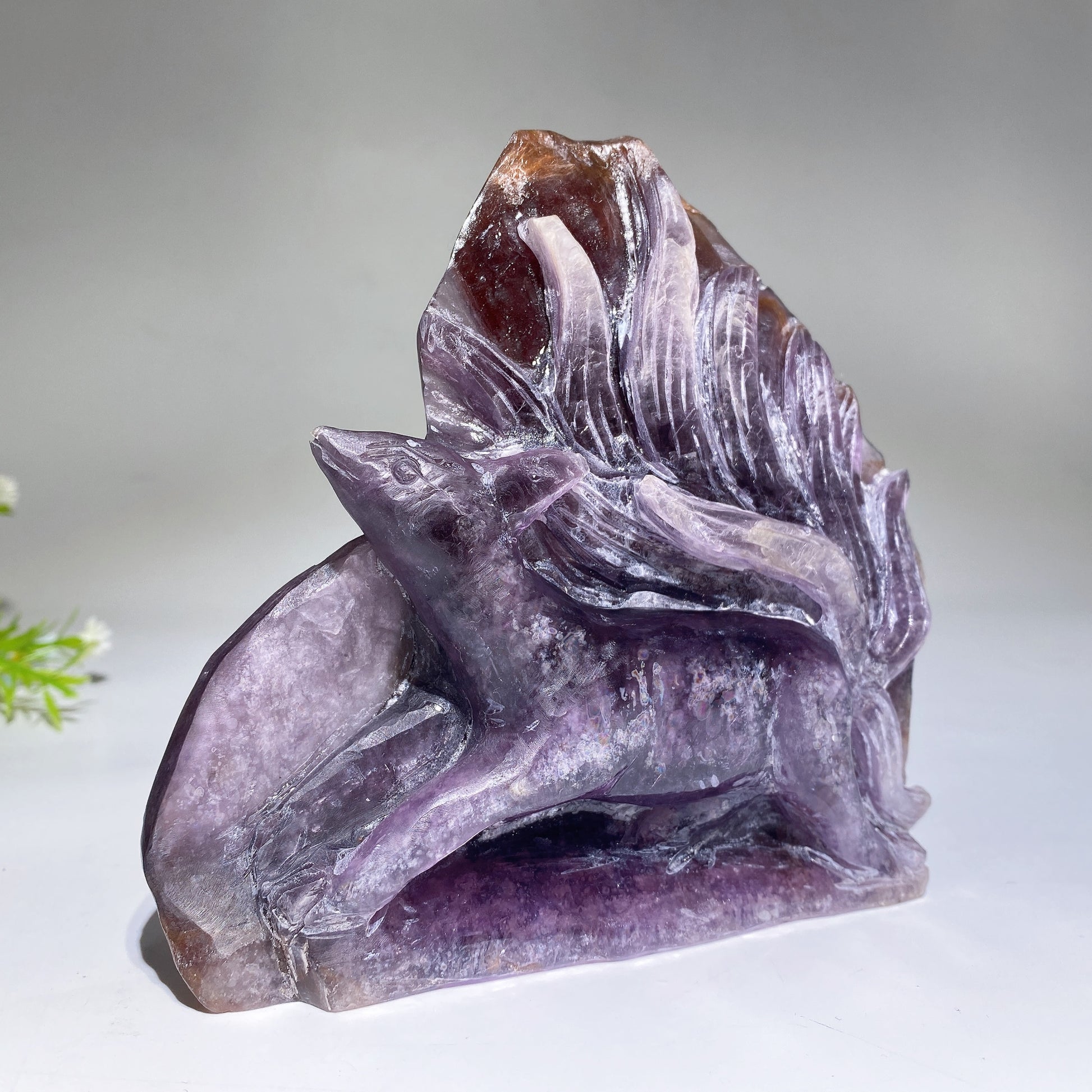 14cm Unique Purple Mica Nine-tails Fox Carving Crystal Healing Bulk Wholesale
