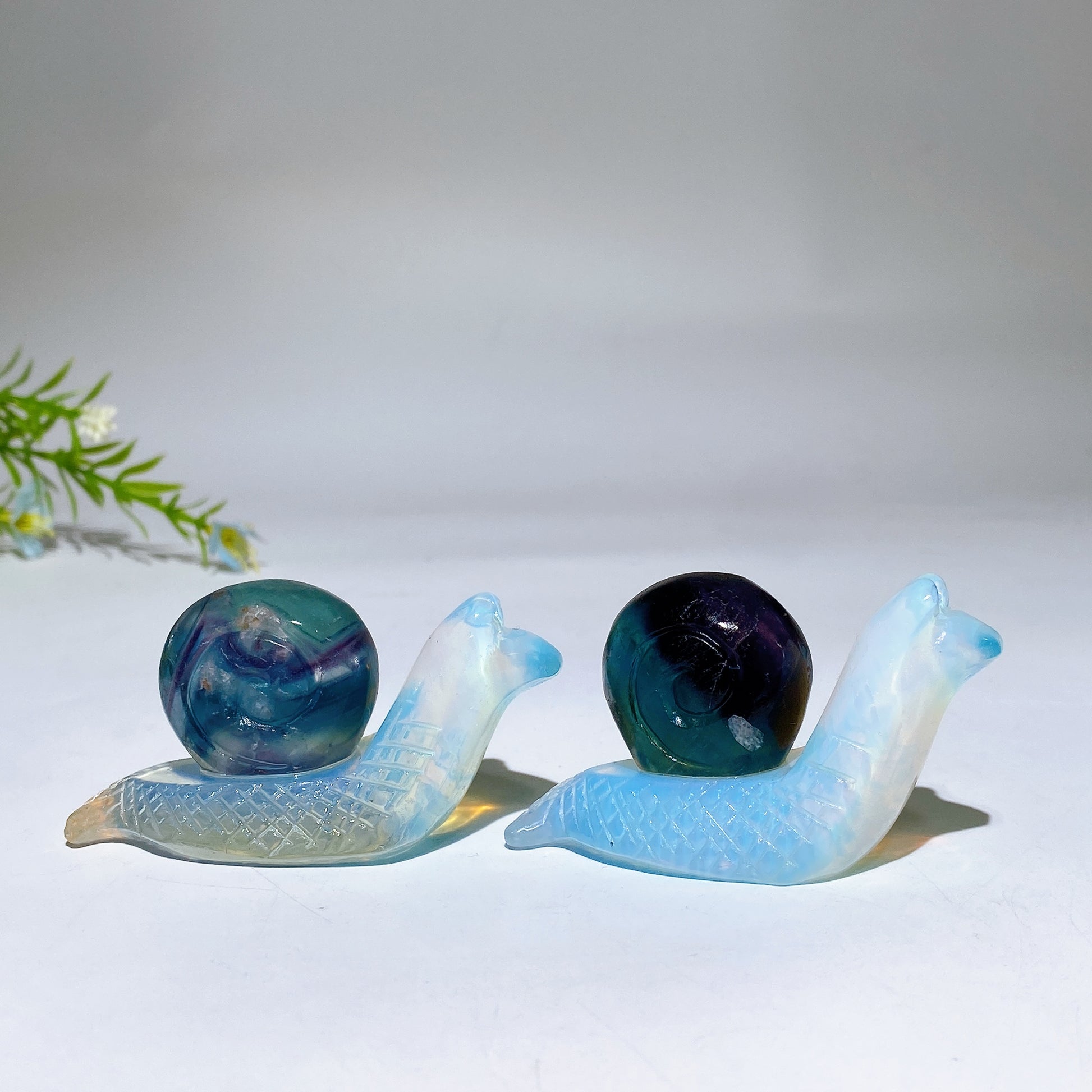 2.5" Opalite Snail with Fluorite Sky Blue Shell Carving Crystal Healing Bulk Wholesale