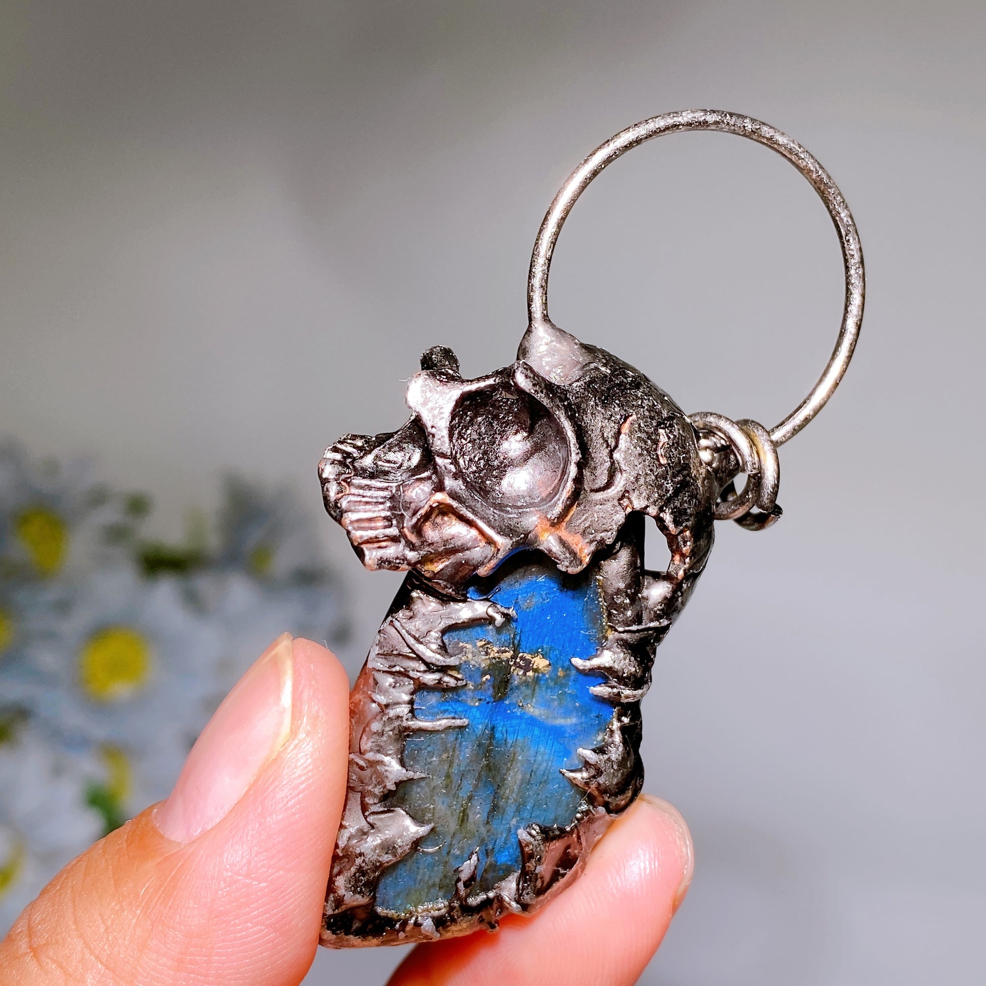 2.8"-3.0" Labradorite with Metal Skull Decor Pendant Crystal Healing Bulk Wholesale