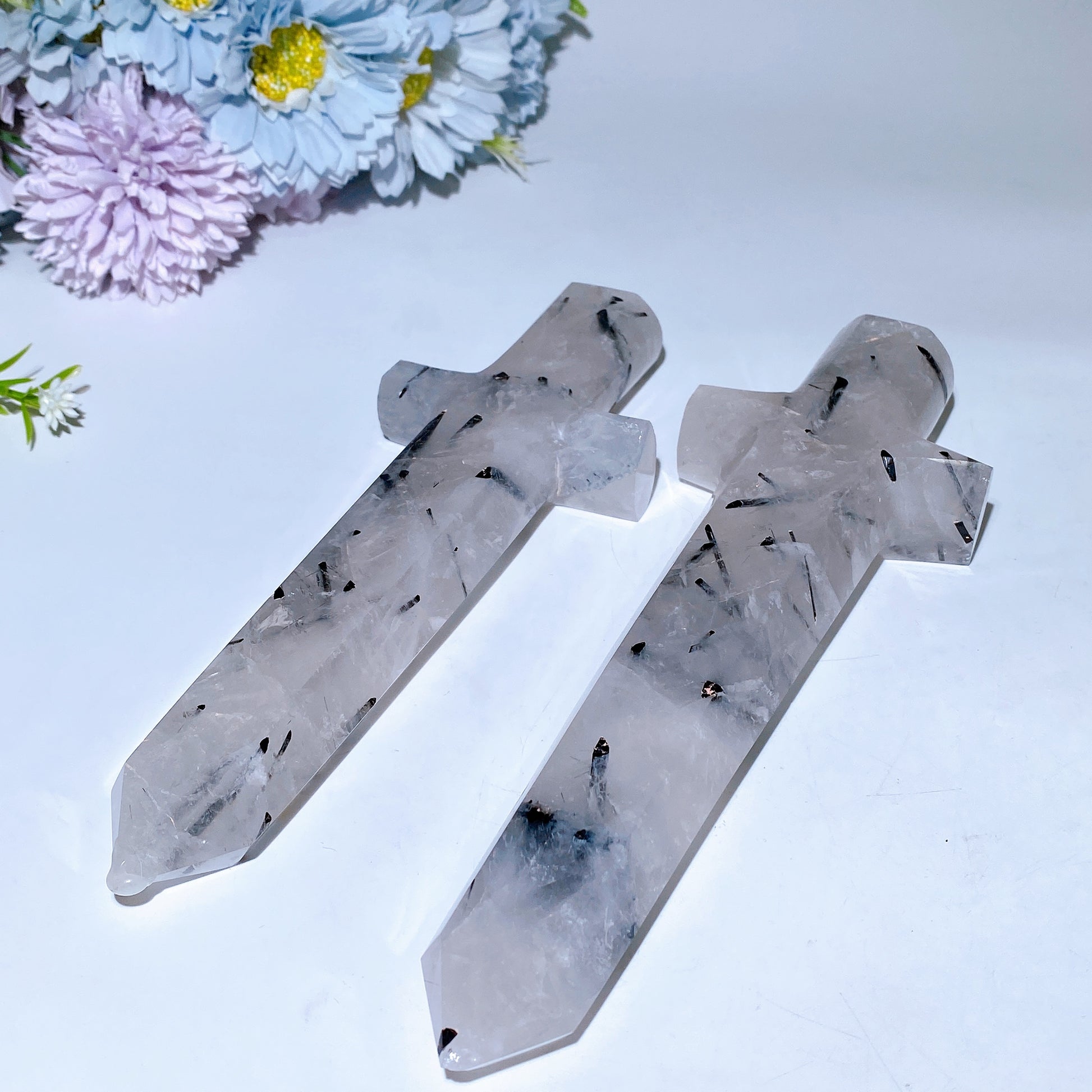 20cm Black Tourmaline In Quartz Sward Carving Crystal Healing Bulk Wholesale