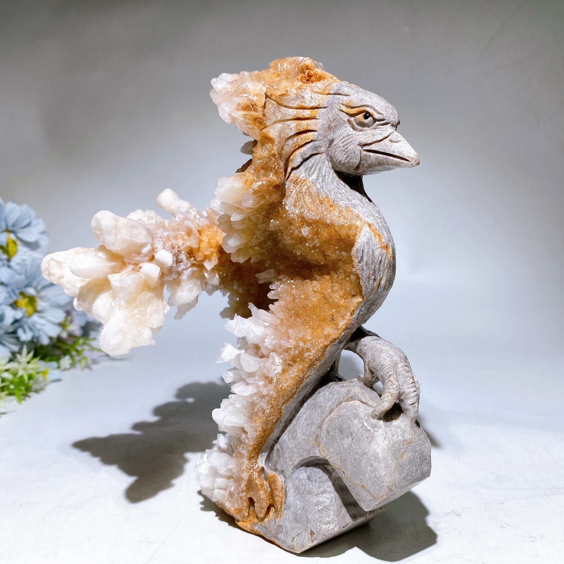 20cm Unique Calcite Cluster Phoenix Carving Crystal Healing Bulk Wholesale