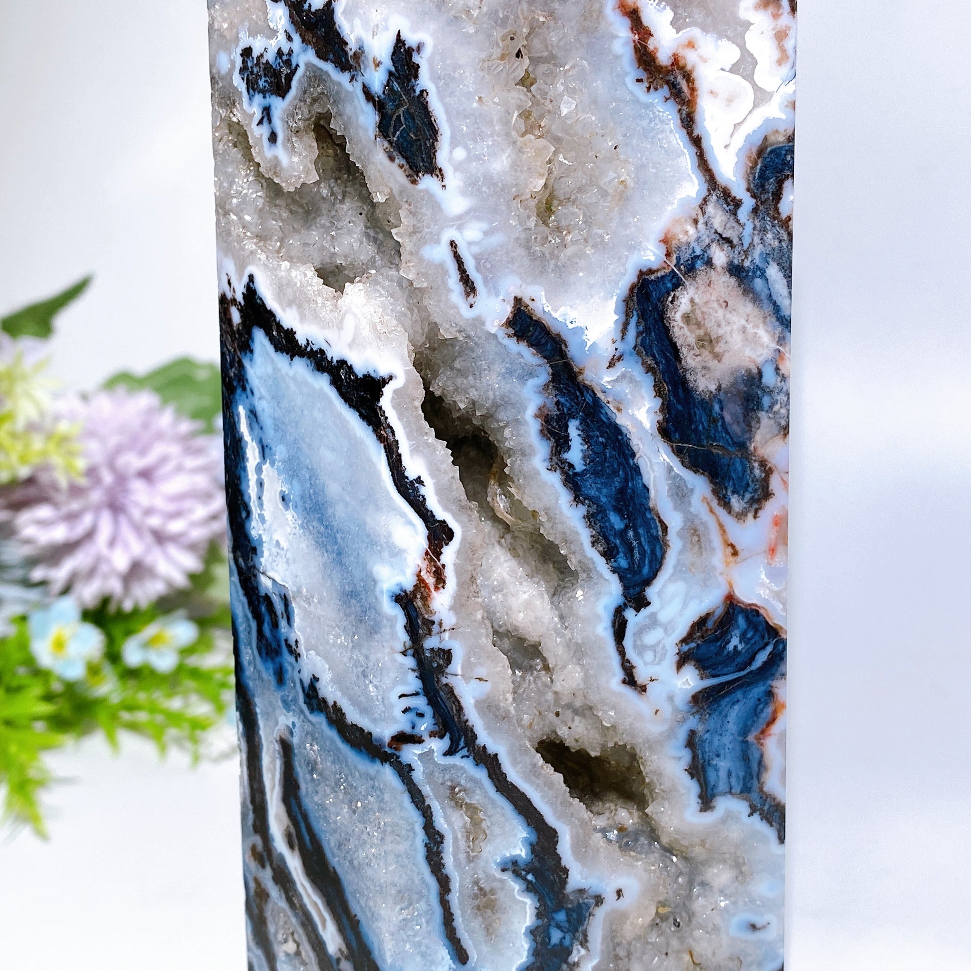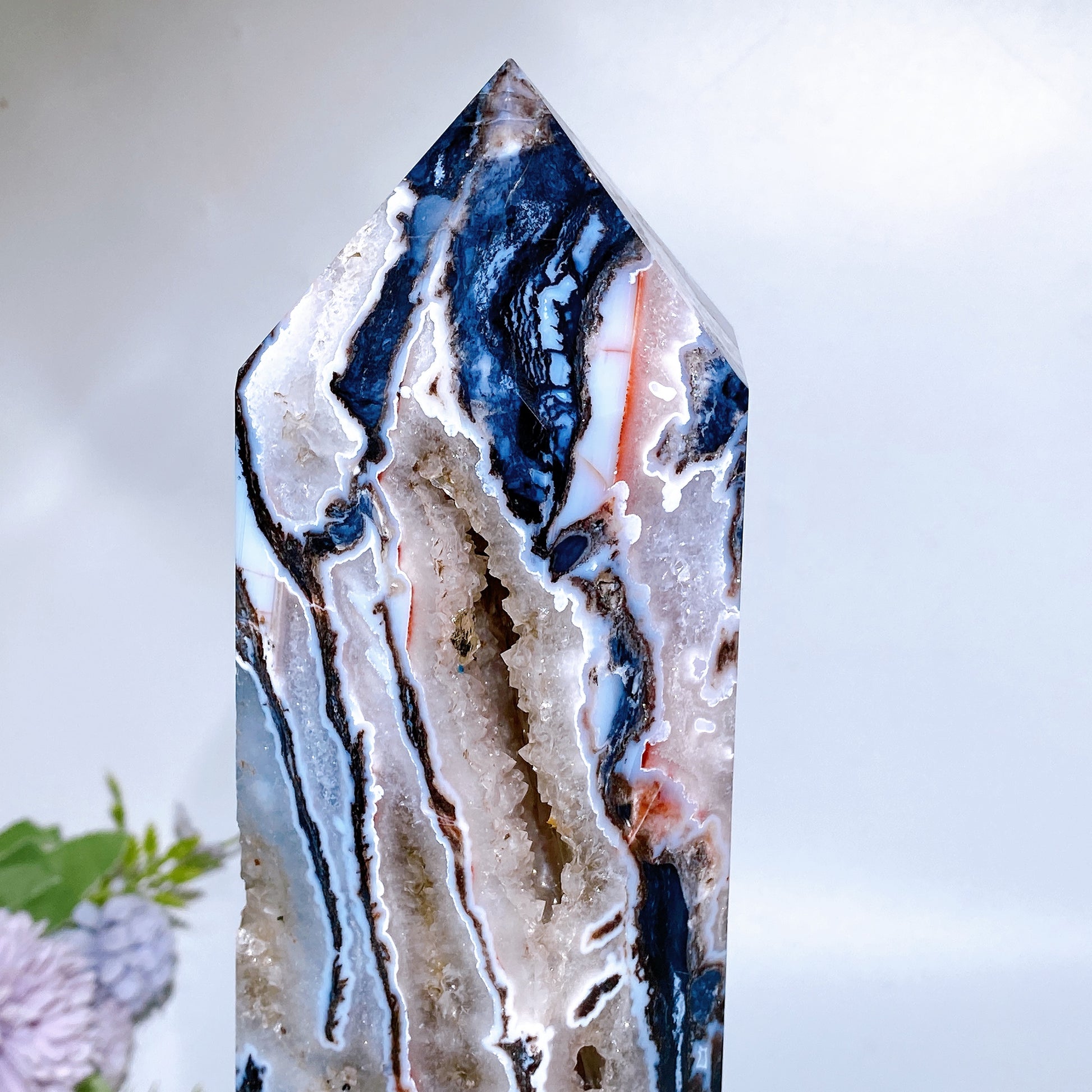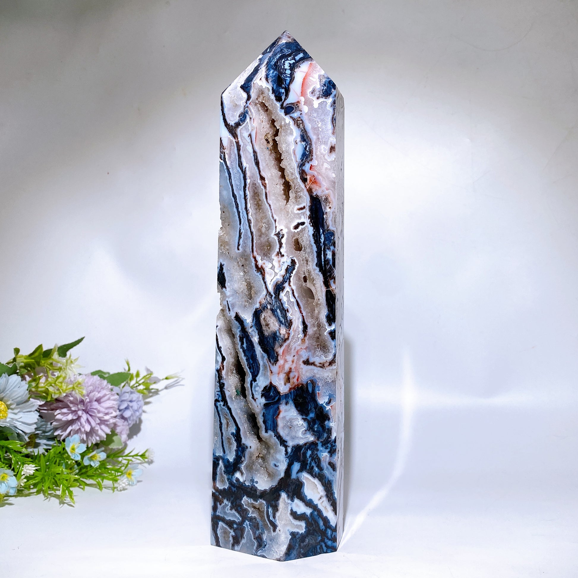 32cm Large Unique Druzy Black Banded Agate In Quartz Tower Crystal Healing Bulk Wholesale