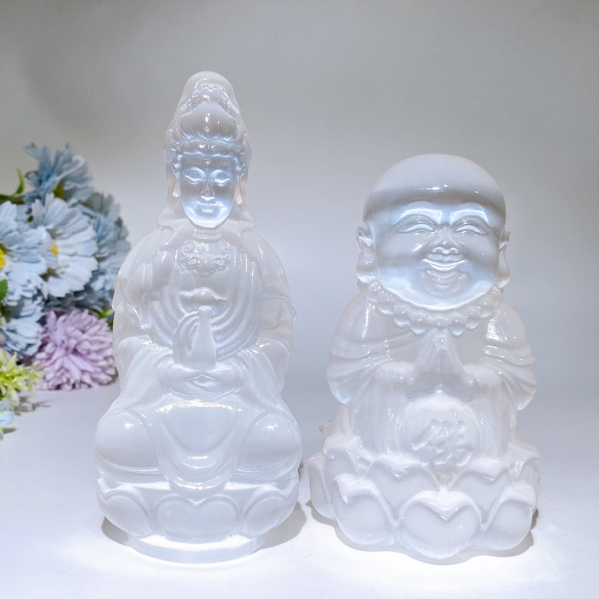 Selenite Guanyin Buddha Carving Crystal Healing Bulk Wholesale
