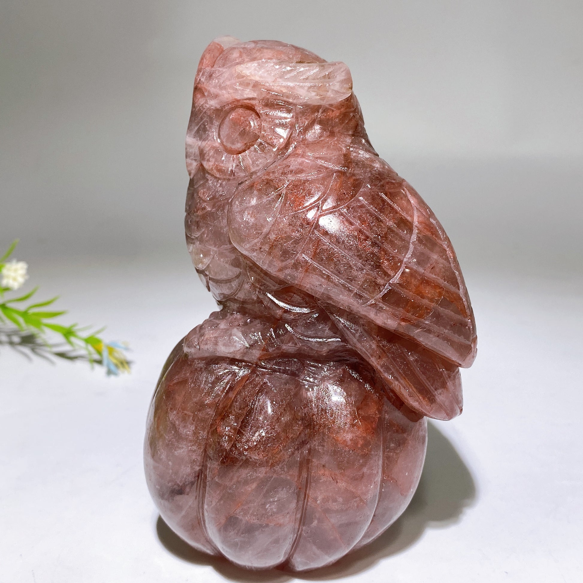 5.2" Fire Quartz Owl on Pumpkin Carving Crystal Healing Bulk Wholesale