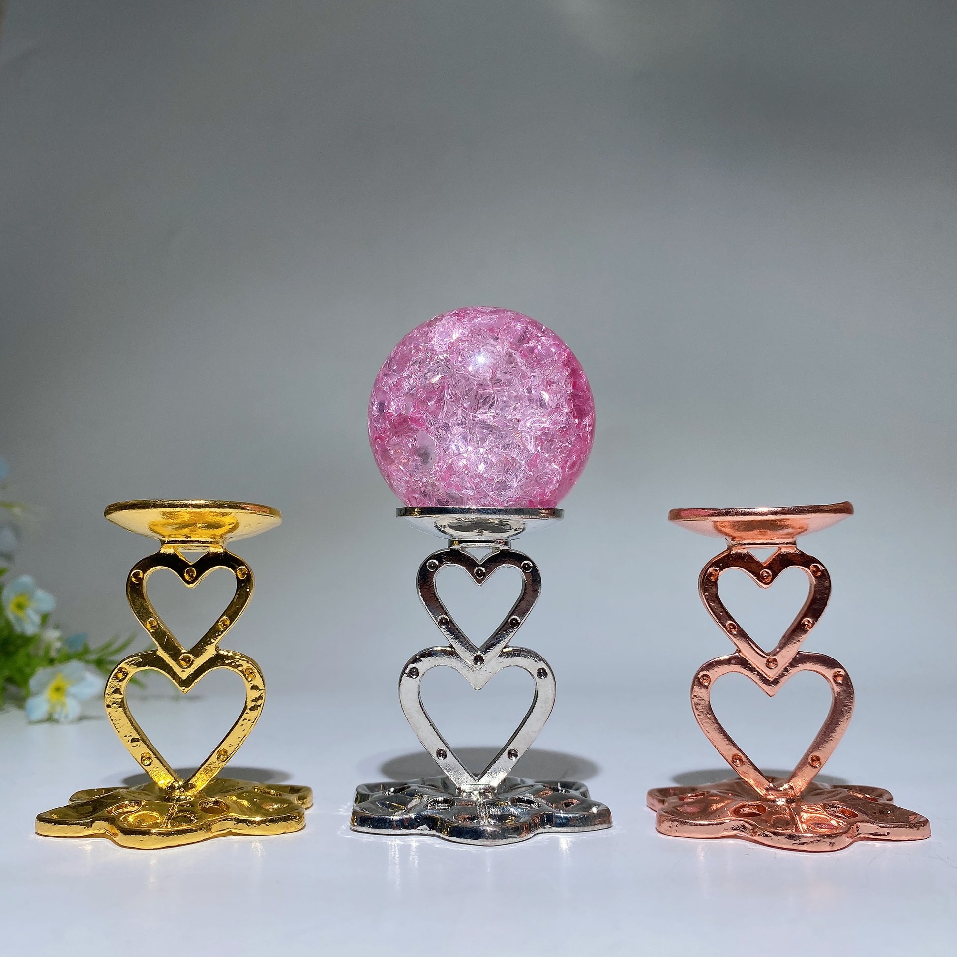 5cm Metal Double Heart Decor Stand Crystal Healing Bulk Wholesale