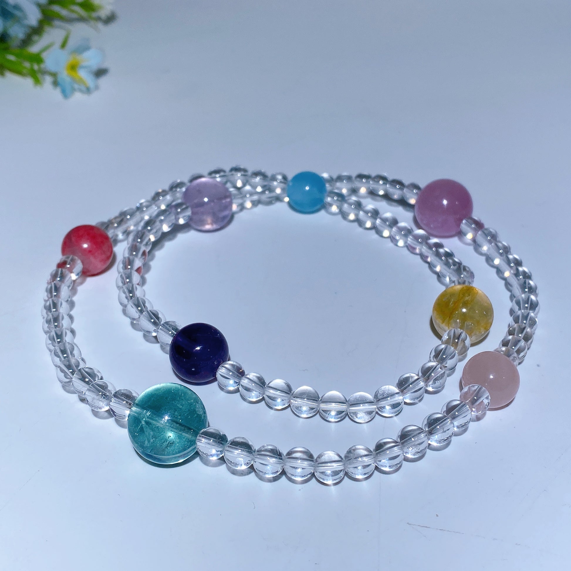 Size: Clear Quartz, approx 6mm; Other material, approx 8-12mm.
