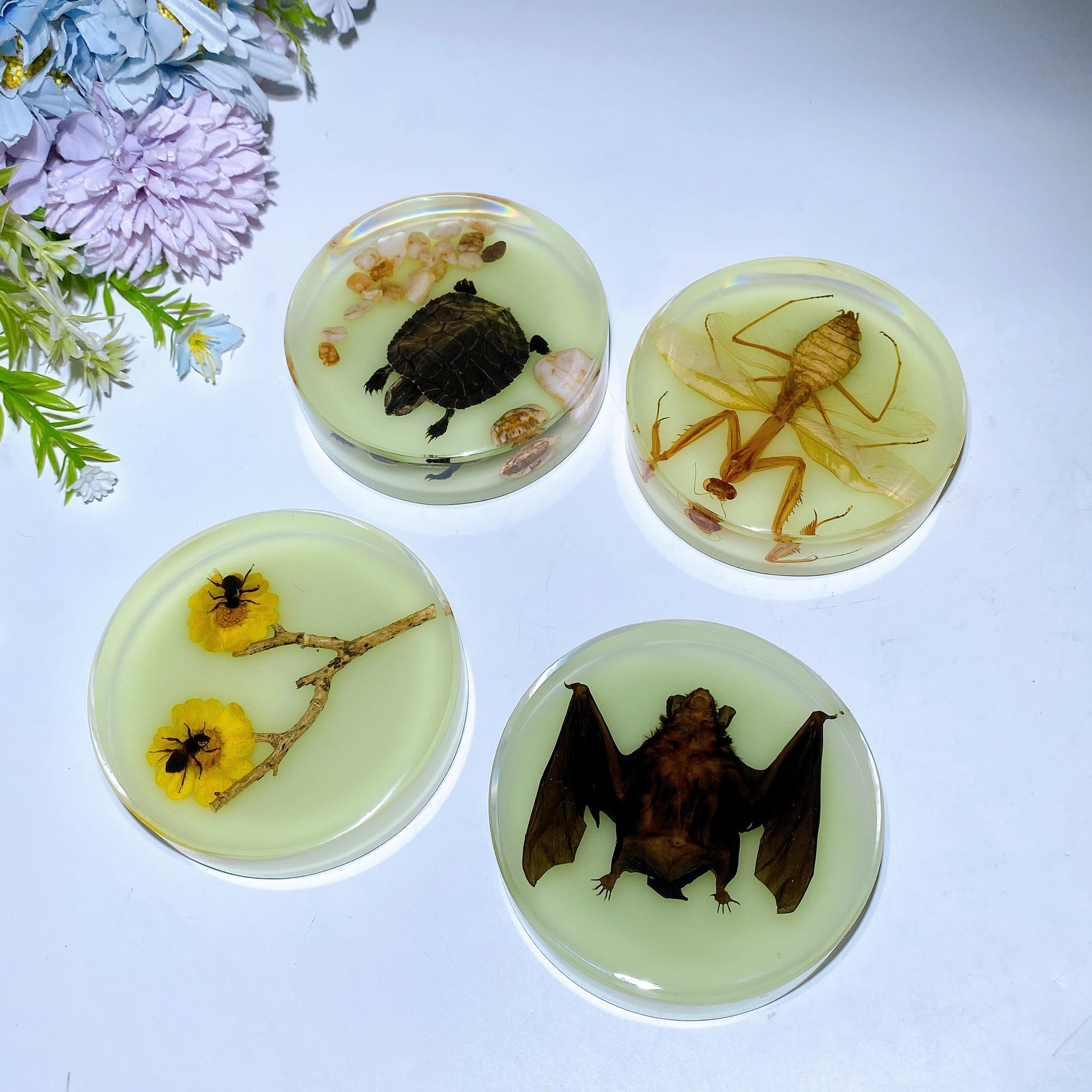 8.5cm Luminous Round Slab with Insect Crystal Healing Bulk Wholesale