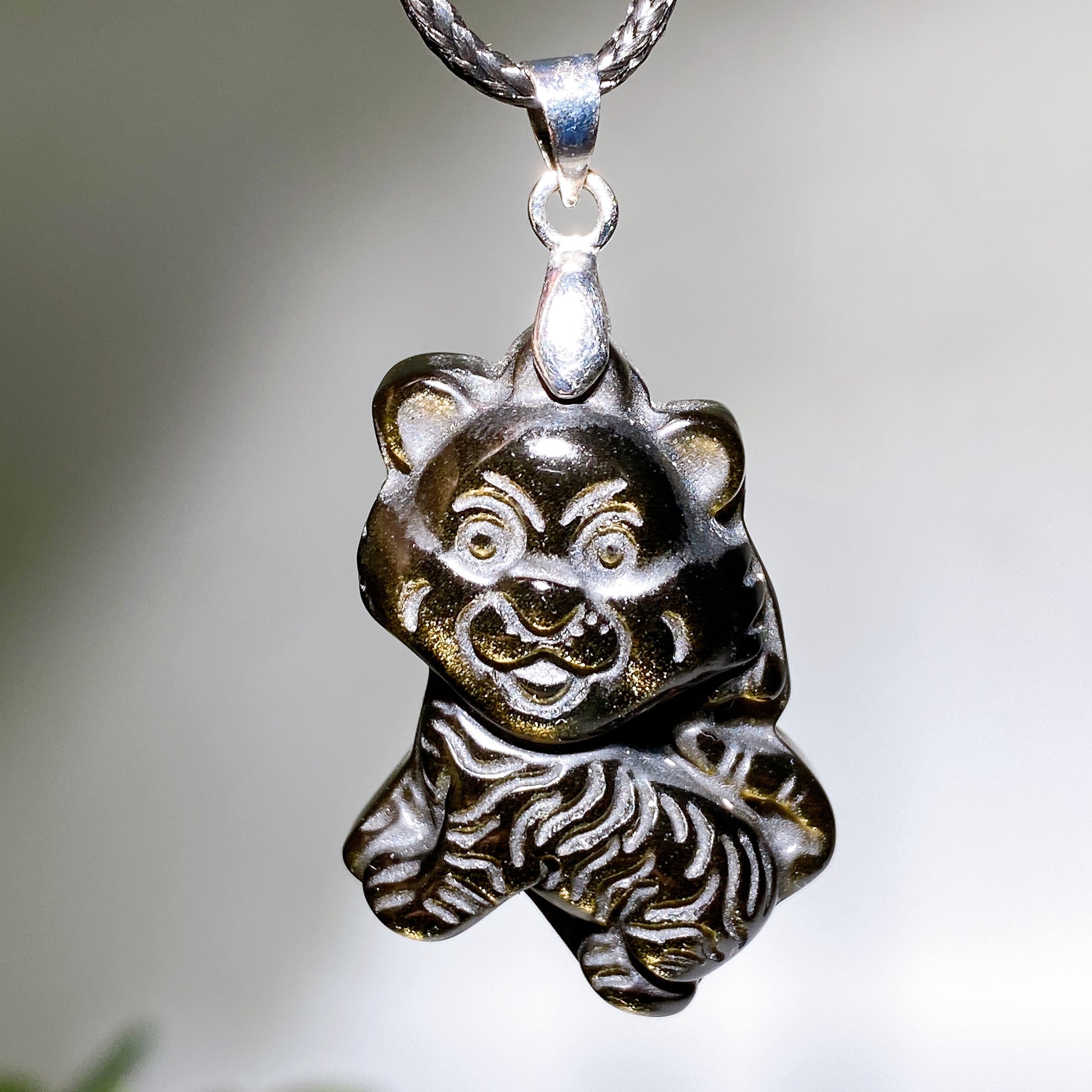 Golden Obsidian Tiger Pendant with Black Cord Crystal Healing Bulk Wholesale