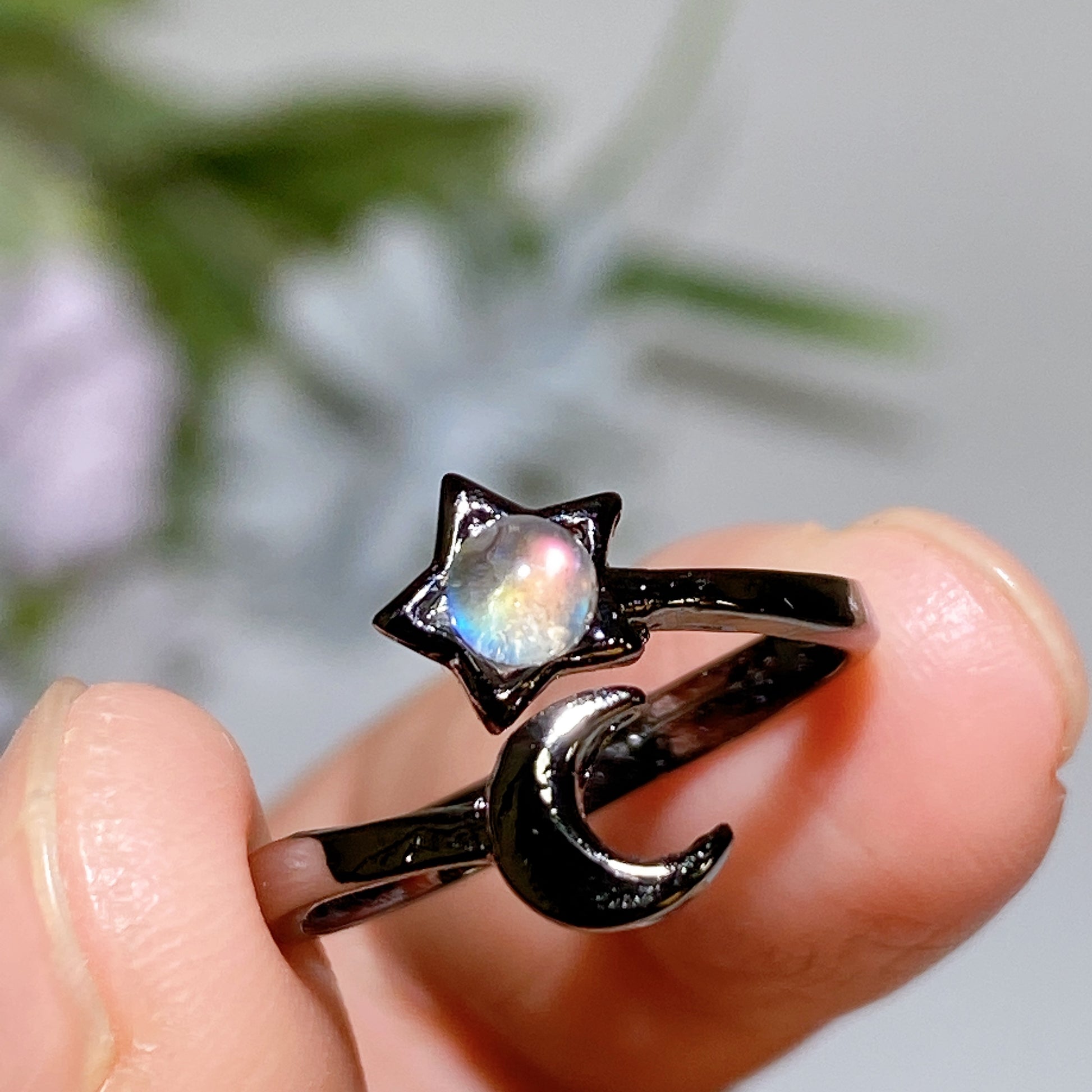 Madagascar Moonstone Moon & Star Ring Crystal Healing Bulk Wholesale