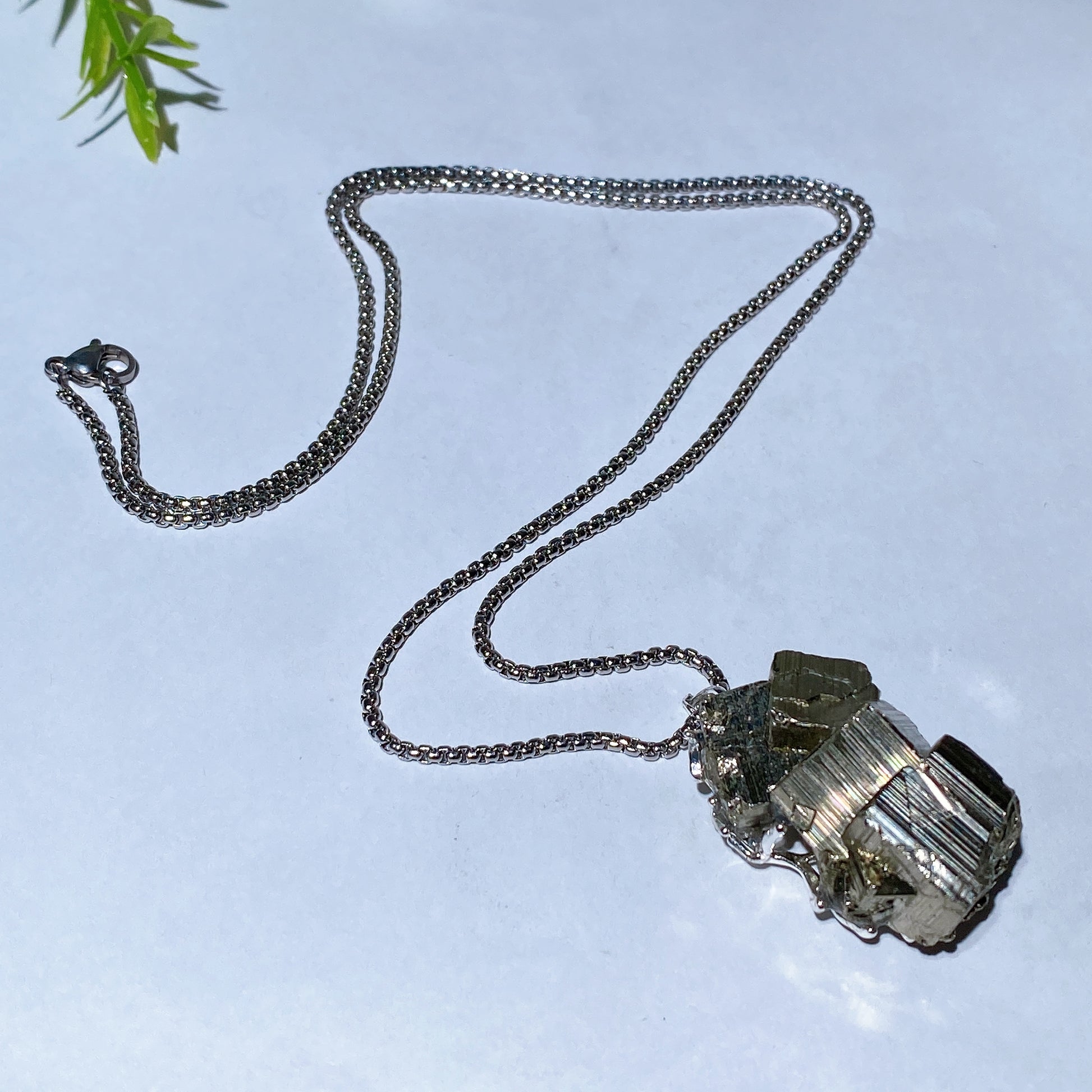 Raw Pyrite Pendant with Chain Necklace Crystal Healing Bulk Wholesale