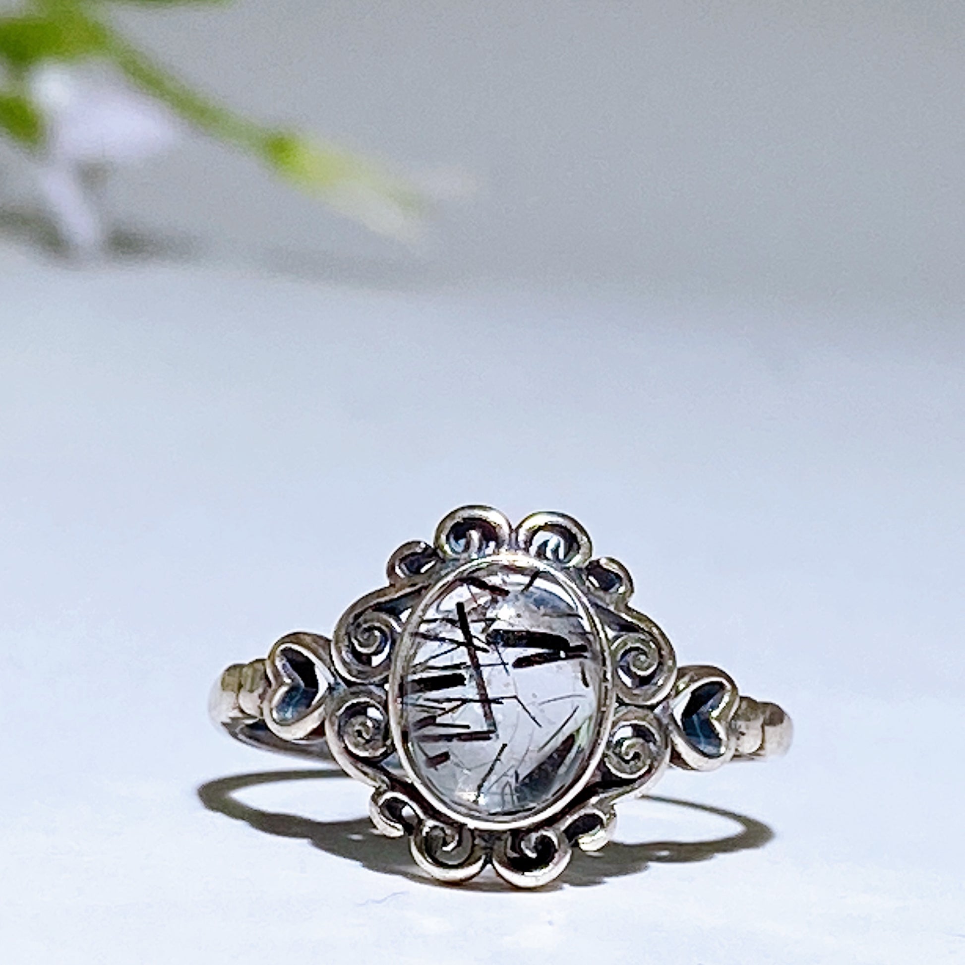 Sterling Silver Black Tourmaline in Quartz Ring Crystal Healing Bulk Wholesale