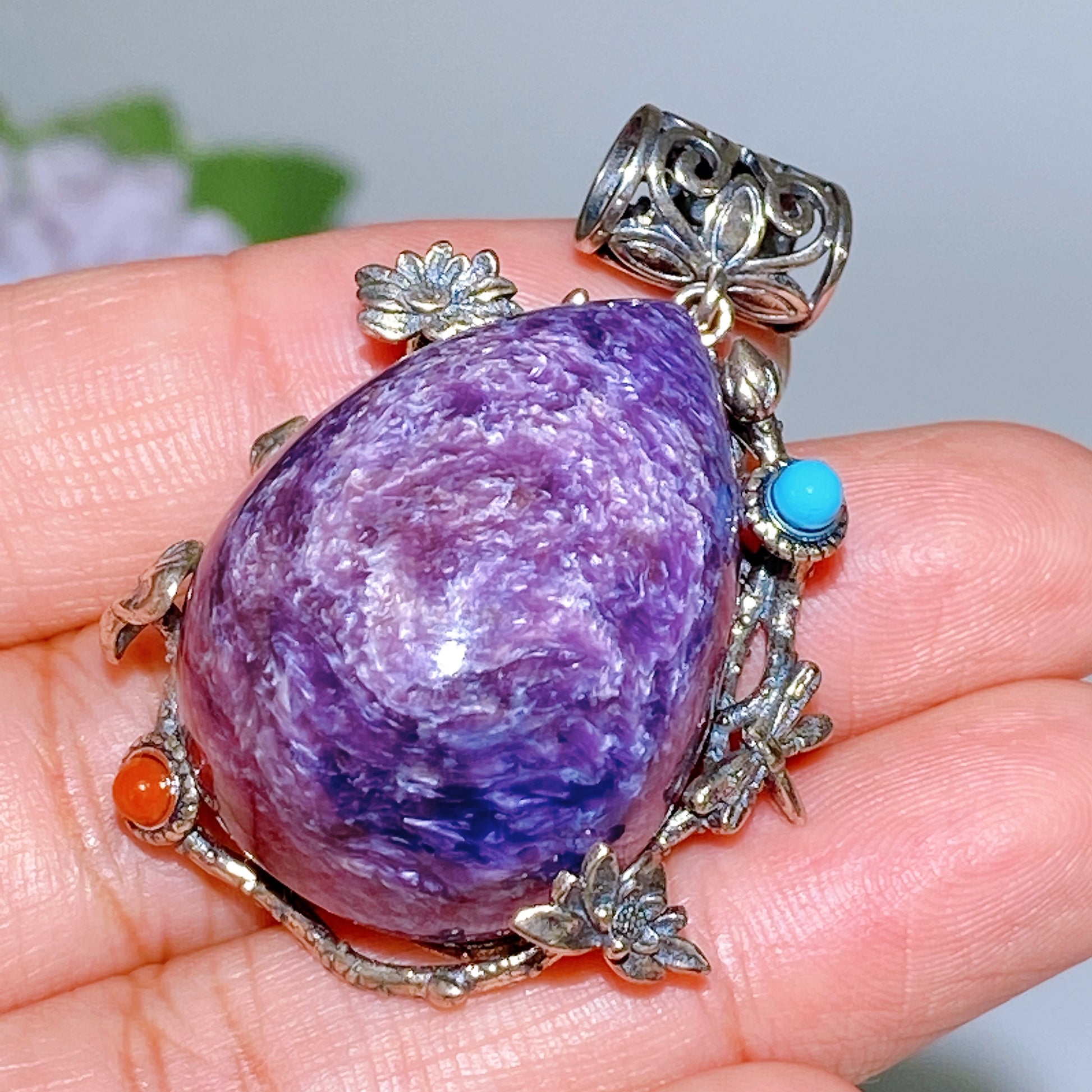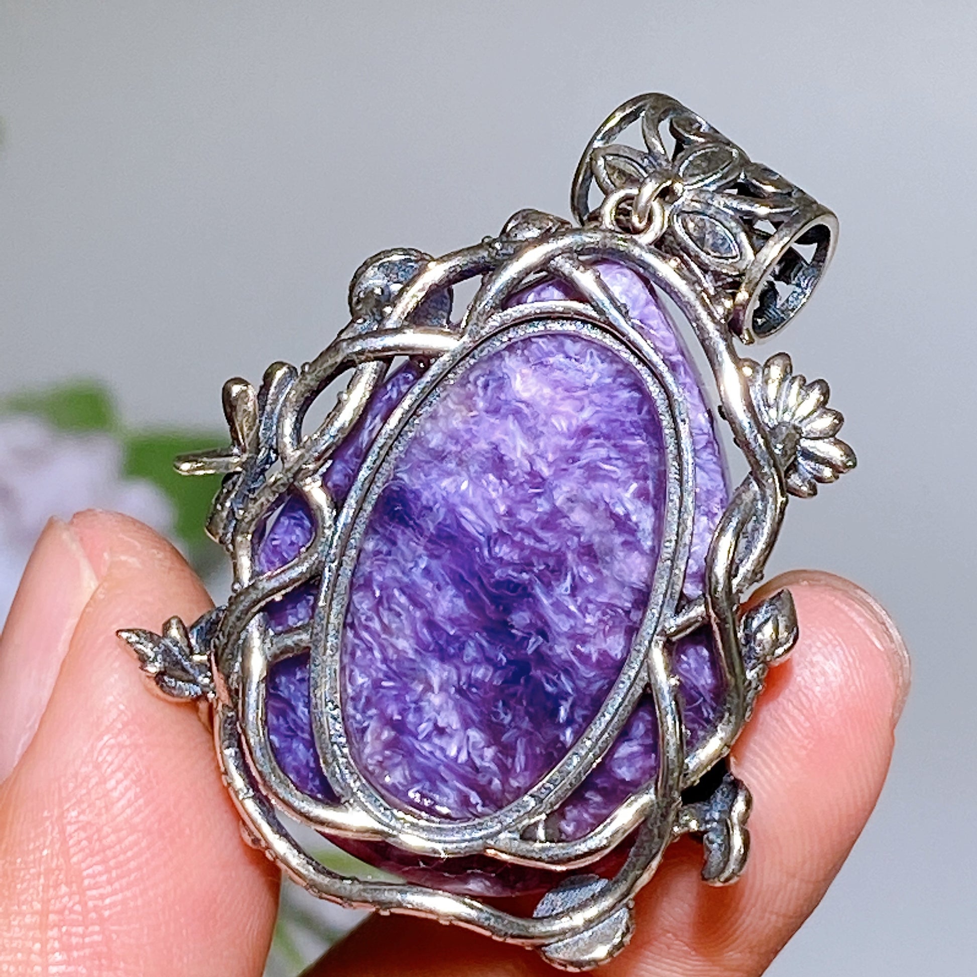 Sterling Silver Charoite Pendant Crystal Healing Bulk Wholesale